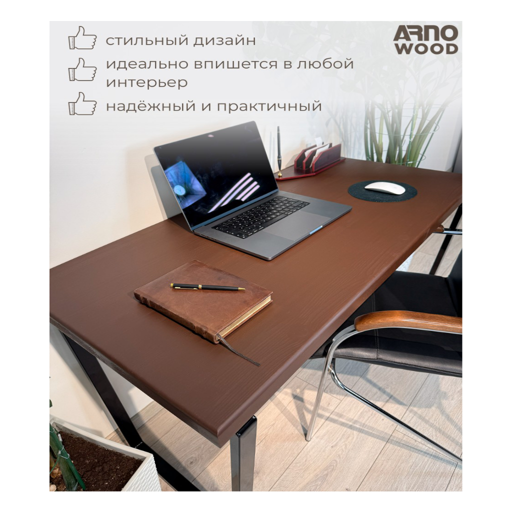 Стол выполнен в лофт стиле, который характеризуется простотой и функциональностью. Он прекрасно подойдет для кабинета или офиса, а также для домашнего использования. Также он станет отличным дополнением к любому интерьеру и будет радовать вас своей долговечностью и надежностью.